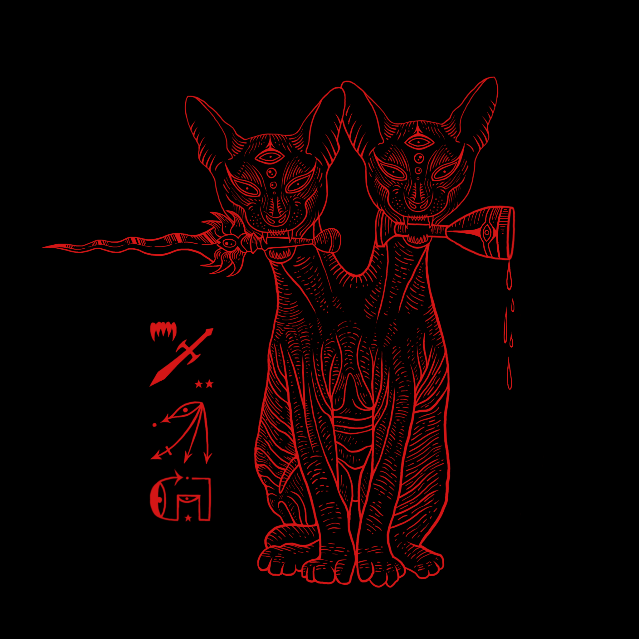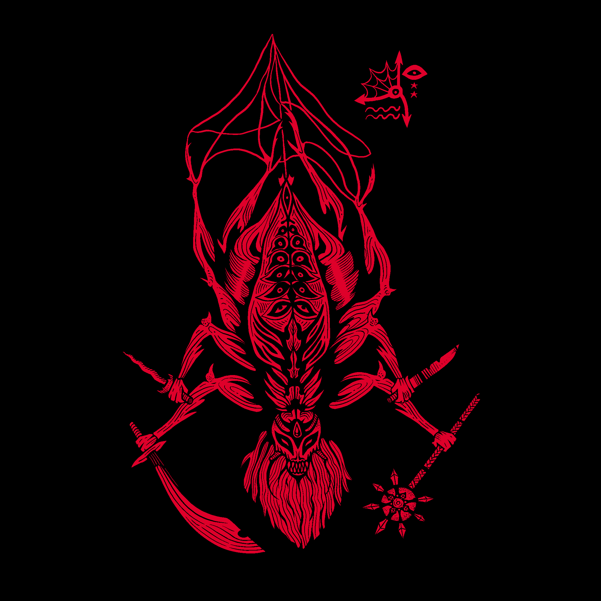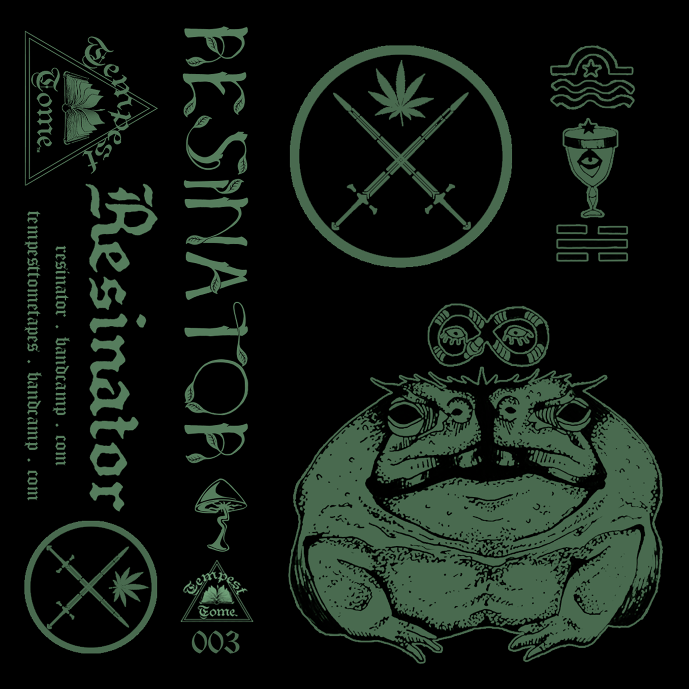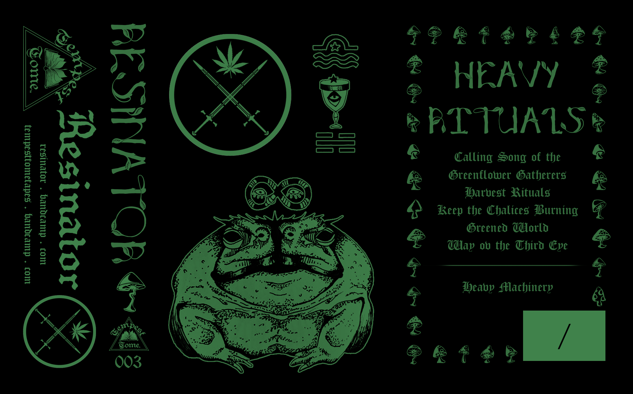 2018, Pen and Ink + Graphic Design, Cassette J-Card for Resinator – Heavy Rituals
