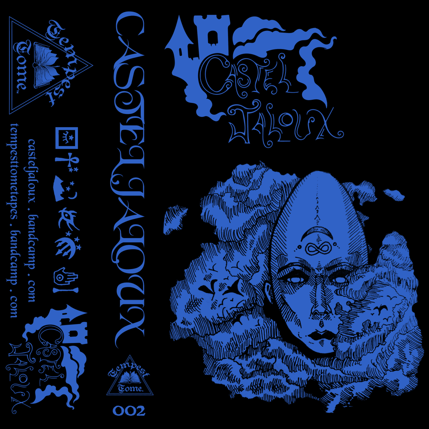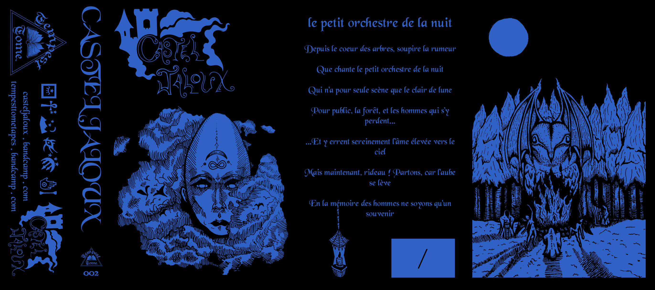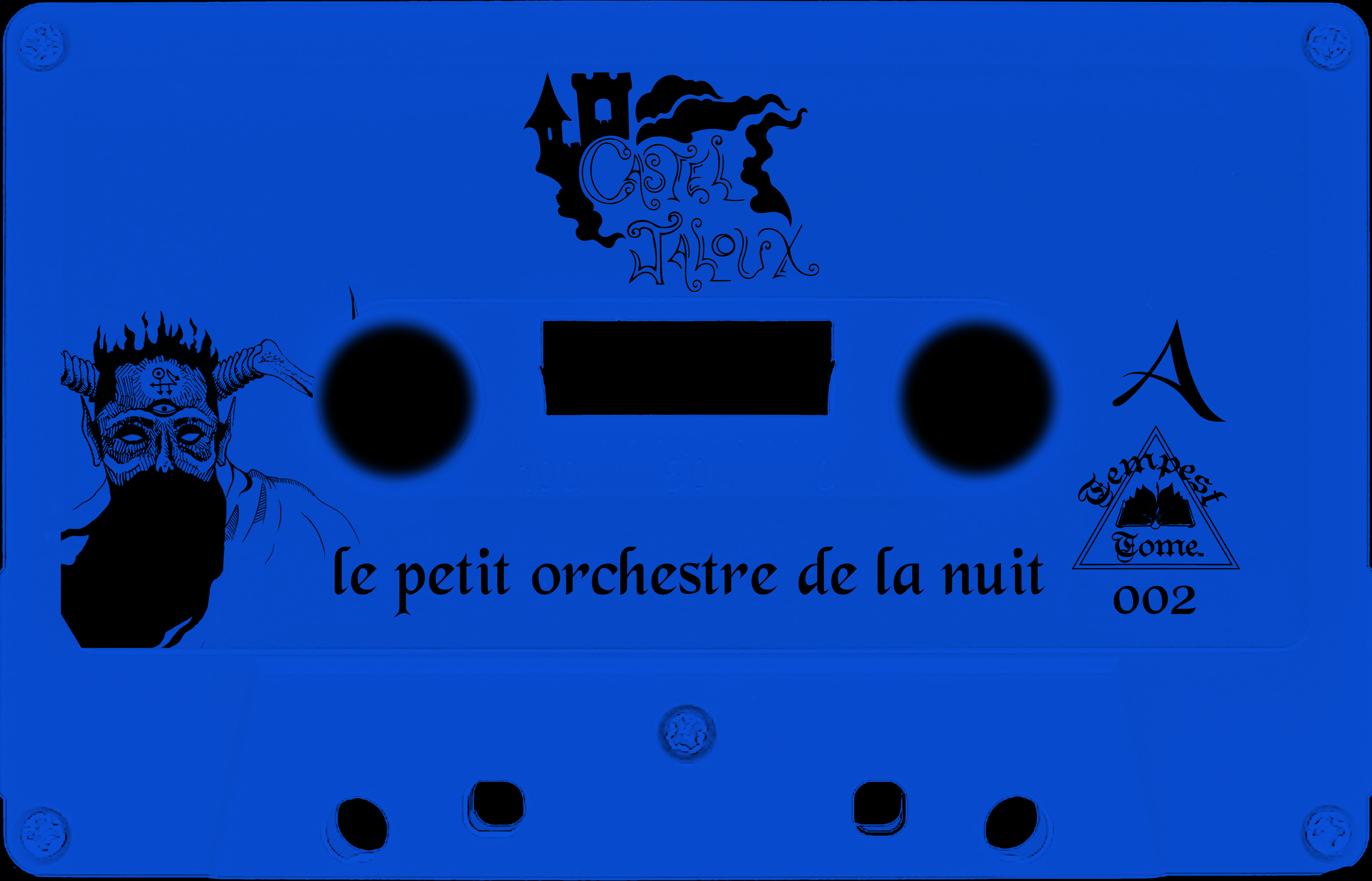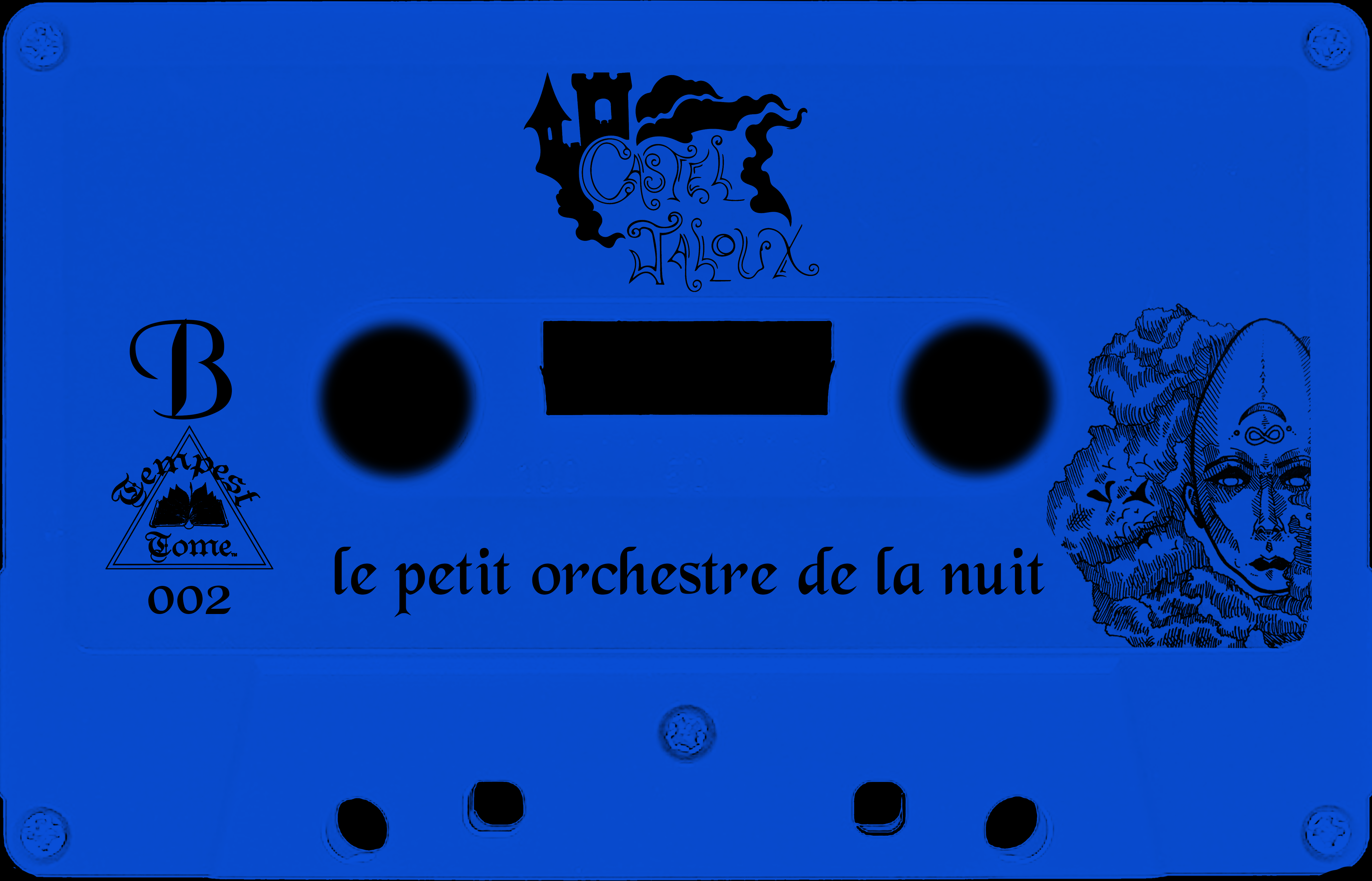 2018, Pen and Ink + Graphic Design, Cassette J-Card for Castel Jaloux – Le petit orchestre de la nuit