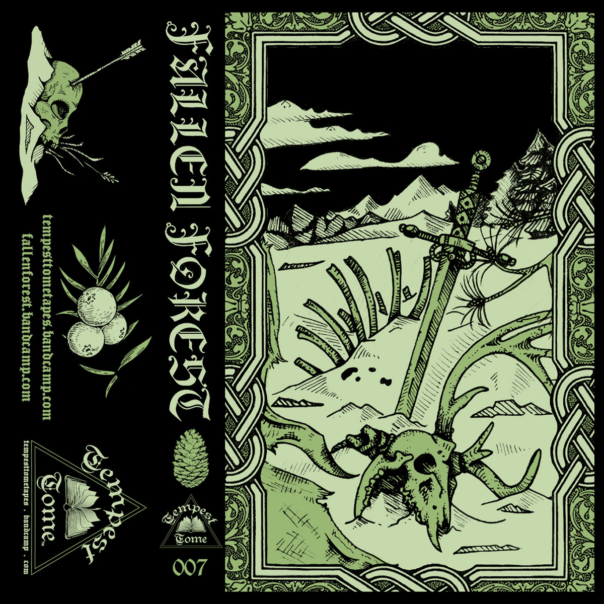 2019 Graphic Design (illustration by Maeve Landers), Cassette J-Card for Fallen Forest – I & II